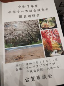 午後、古賀市で行われた、県中部11市議長会議員研修会に参加しました。講師は全国議会議長会職員の篠田光洋さんで、わかりやすいお話でした。一般質問などに関する実務的な説明など、すぐに役立つこともあって参考になりました。