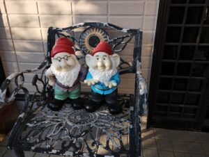 午後は、買い物同行支援。初めて、コミュニティの車が使えなかったので自分の車を使用。利用者の女性は足が少しだけ摺り足で痛い、とおっしゃっていました。塩ビ管を買いに行ったのですが、自分で門塀付近に手摺を付けるのだそうです。ビデオ作品制作はセミプロ級の方で、残り時間はおしゃべりしました。次回からはお友達としてお邪魔させて頂くことにしました。お見送りの小人さんもペンキを塗り直して可愛さを取り戻していました。見習うべき暮らしぶりでした。