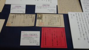 看護婦にも赤紙が来たこと、戦争中にも二日市温泉には40人くらいの芸者さんがいて、彼女たちもかっぽう着を着て戦勝祈願をしたこと、衣料切符の現物とどのようなものが何点で買えたか、在郷軍人名簿に朱書きで「戦死」とある資料、見たことのある墓石が軍人のものでお墓にも階級差があったこと等々、知らないことや驚くことがたくさんありました。
