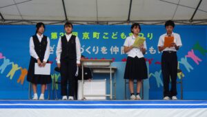 午後は、京町こどもまつりにお邪魔しました。子ども達が年齢ごとに、元気よく踊ったり、平和や、差別をなくしていくためのアピールなどをして、力強かったです。思いが強く伝わってきました。日々の活動を続けていってほしいと思いました。