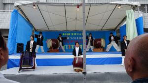 10月18日 午前は筑紫南コミュニティのおまつりでした。開会式直後の、市長とのじゃんけんで、初めて勝つ経験をして飲み物を頂きました。子どものように嬉しい経験でした。