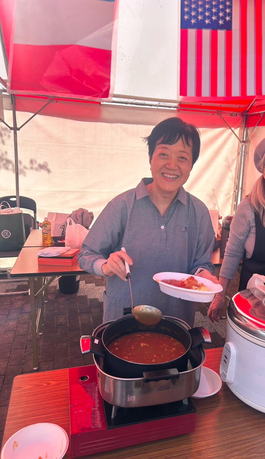 10月26日 パープルプラザフェスタ2日目 カレー作りは要領がよくなって、昨日より1時間も早くできました。お天気にも恵まれて順調にお客さんが来てくださいました。見覚えのある男性に「1回来て頂きましたよね?」と尋ねるとはい、とお返事。「昨日でしたか?」「今日です」というやりとりがありました。馬市の味も弾力もよいお米や、グリーンコープの鶏ミンチ、トマト缶をタップリつかい、おいしいの声が嬉しかったです。