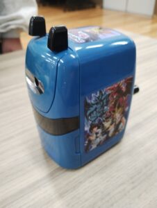 別の女の子が、鉛筆を削りたいと言うので公民館の事務所から借りて来ました。その構造は私が子どもの頃と全くおんなじ!電動のものがあるとはいえ、不思議な気がしました。子どもたちといると色んなことを学びます。