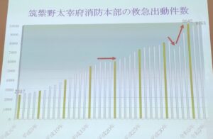 議会で救急救命講習を受講しました。出動要請が増え、予備の救急車を購入し、正規救急車が出払っている時は消防の人員で編成したメンバーが出動するそうです。